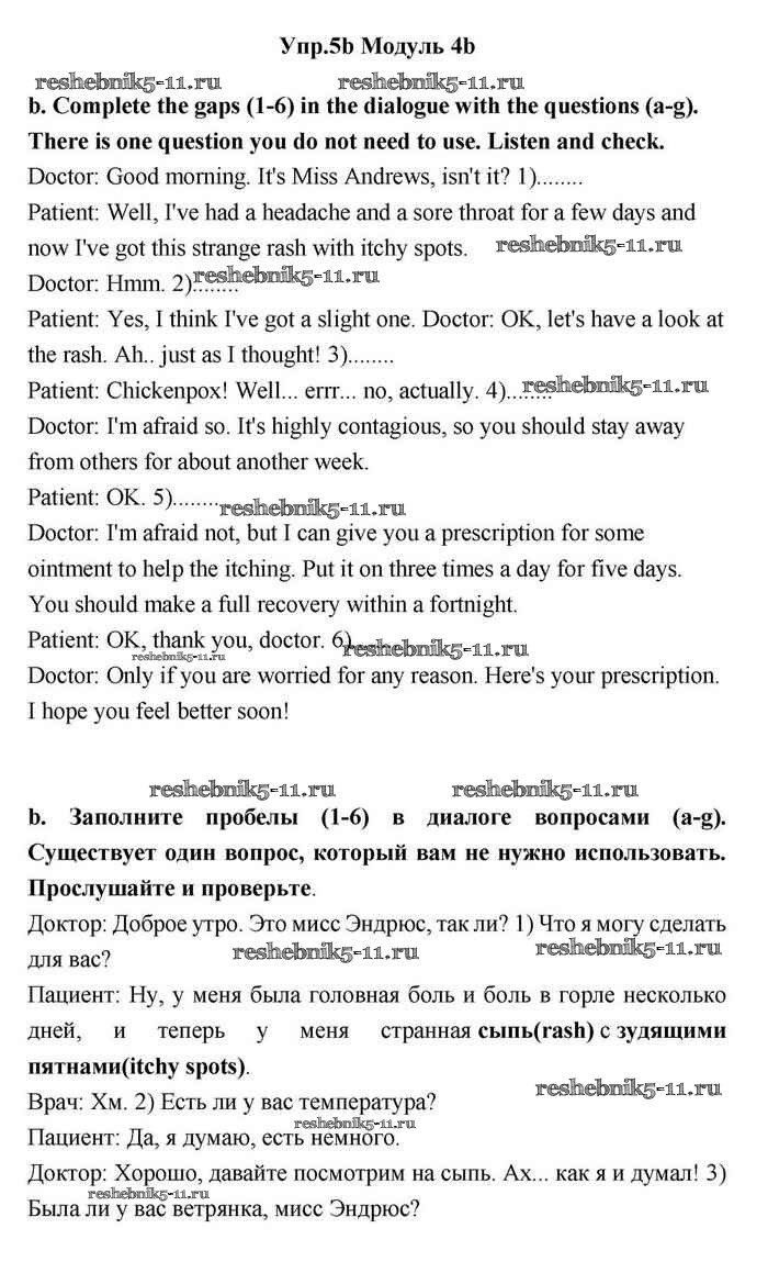 Готовая домашняя работа с ответами по Английскому языку за 11 класс Эванс, Дули, Оби, Афанасьева, Михеева Учебник Spotlight Просвещение 2015 ФГОС - 4b 5