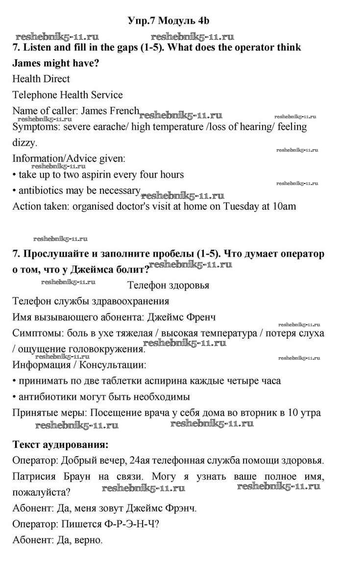 Готовая домашняя работа с ответами по Английскому языку за 11 класс Эванс, Дули, Оби, Афанасьева, Михеева Учебник Spotlight Просвещение 2015 ФГОС - 4b 7