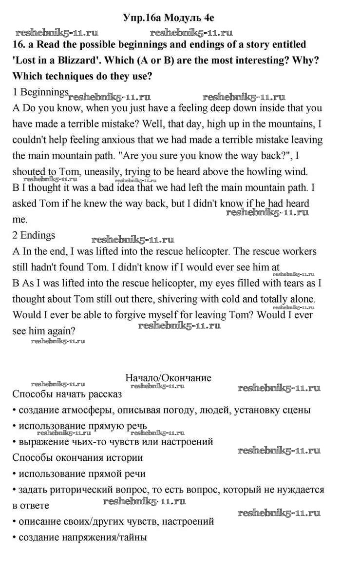 Готовая домашняя работа с ответами по Английскому языку за 11 класс Эванс, Дули, Оби, Афанасьева, Михеева Учебник Spotlight Просвещение 2015 ФГОС - 4e 16