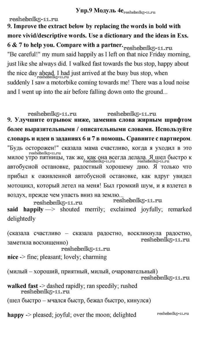 Готовая домашняя работа с ответами по Английскому языку за 11 класс Эванс, Дули, Оби, Афанасьева, Михеева Учебник Spotlight Просвещение 2015 ФГОС - 4e 9