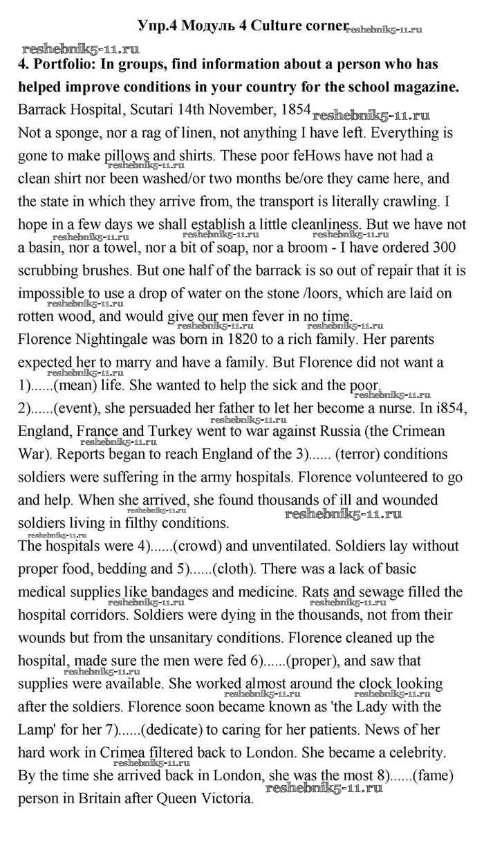 Готовая домашняя работа с ответами по Английскому языку за 11 класс Эванс, Дули, Оби, Афанасьева, Михеева Учебник Spotlight Просвещение 2015 ФГОС - Culture corner 4 4