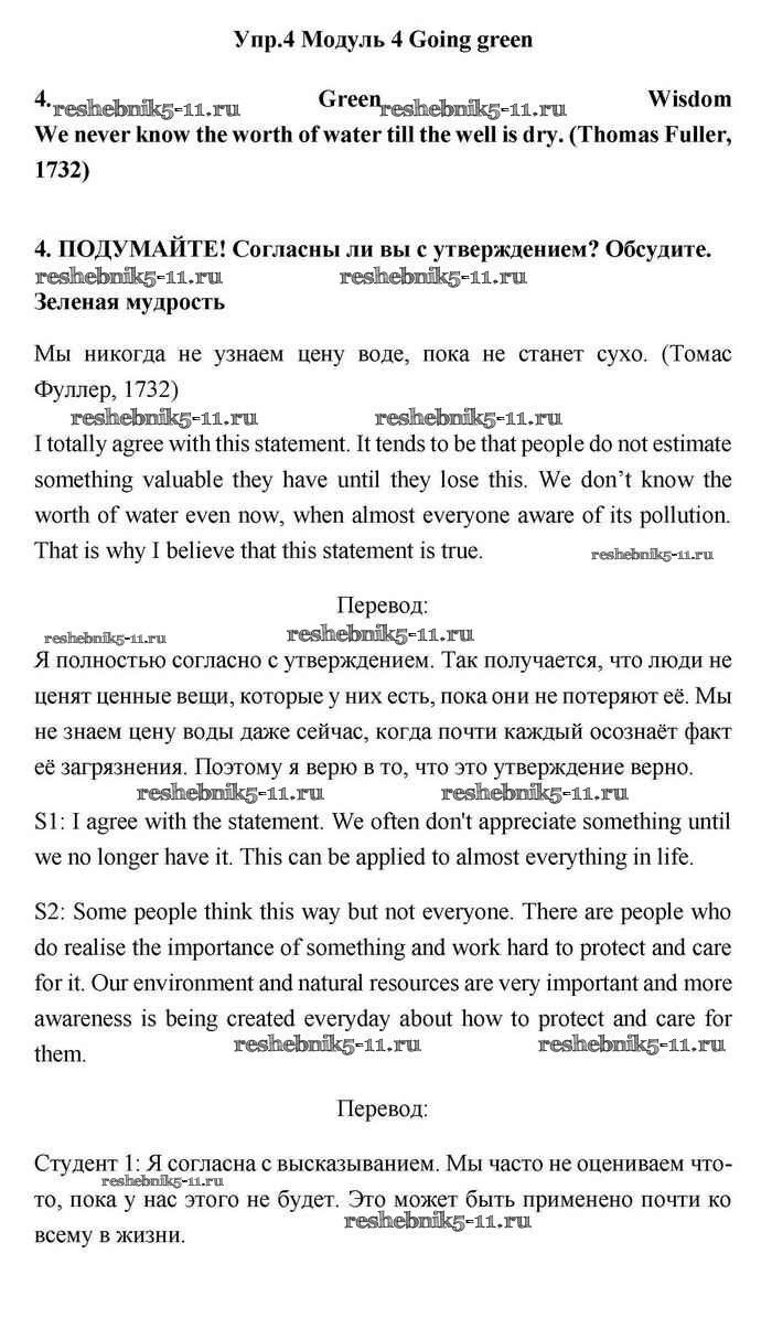Готовая домашняя работа с ответами по Английскому языку за 11 класс Эванс, Дули, Оби, Афанасьева, Михеева Учебник Spotlight Просвещение 2015 ФГОС - Going green 4