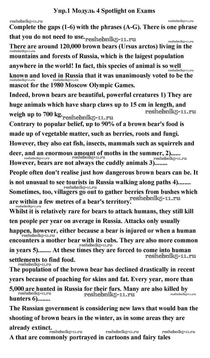 Готовая домашняя работа с ответами по Английскому языку за 11 класс Эванс, Дули, Оби, Афанасьева, Михеева Учебник Spotlight Просвещение 2015 ФГОС - Spotlight on exams Reading