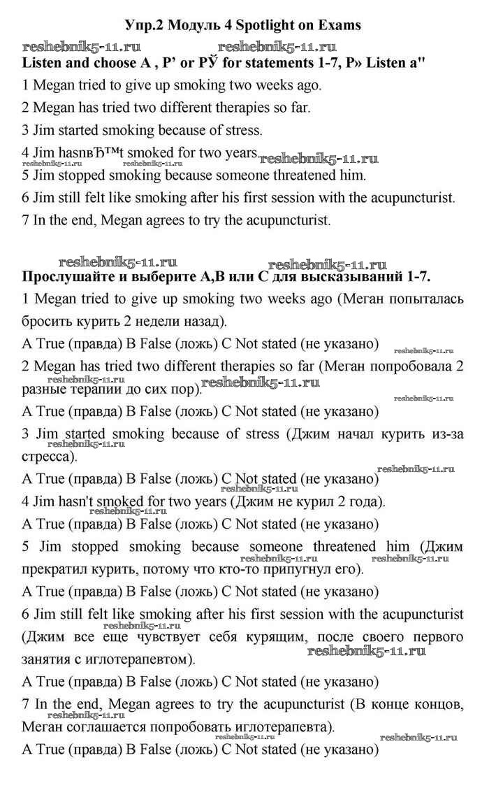 Готовая домашняя работа с ответами по Английскому языку за 11 класс Эванс, Дули, Оби, Афанасьева, Михеева Учебник Spotlight Просвещение 2015 ФГОС - Spotlight on exams Listening
