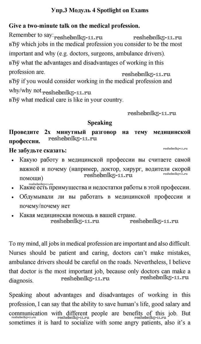 Готовая домашняя работа с ответами по Английскому языку за 11 класс Эванс, Дули, Оби, Афанасьева, Михеева Учебник Spotlight Просвещение 2015 ФГОС - Spotlight on exams Speaking