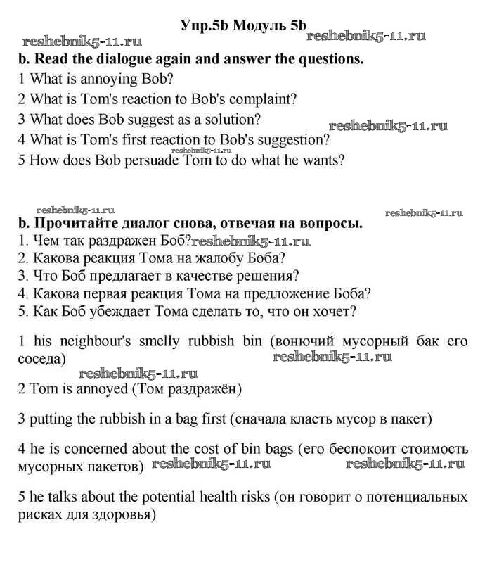 Готовая домашняя работа с ответами по Английскому языку за 11 класс Эванс, Дули, Оби, Афанасьева, Михеева Учебник Spotlight Просвещение 2015 ФГОС - 5b 5