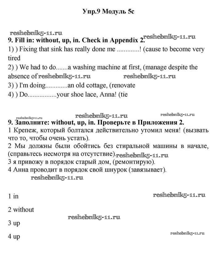 Готовая домашняя работа с ответами по Английскому языку за 11 класс Эванс, Дули, Оби, Афанасьева, Михеева Учебник Spotlight Просвещение 2015 ФГОС - 5c 9
