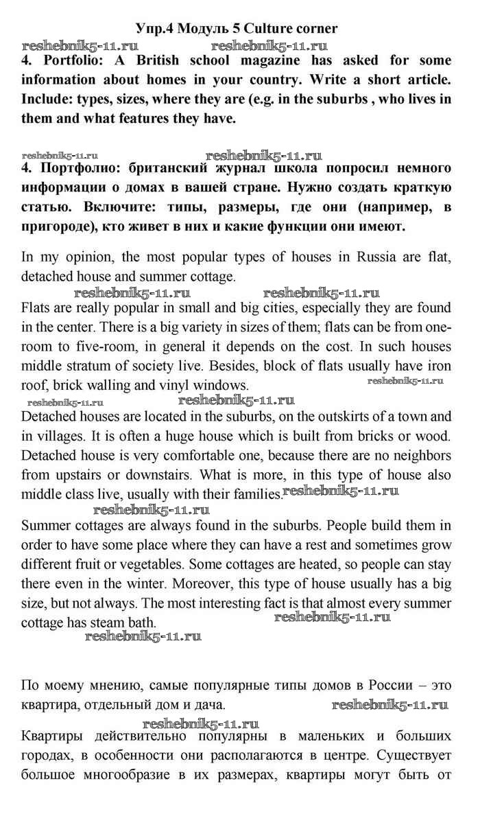 Готовая домашняя работа с ответами по Английскому языку за 11 класс Эванс, Дули, Оби, Афанасьева, Михеева Учебник Spotlight Просвещение 2015 ФГОС - Culture corner 5 4