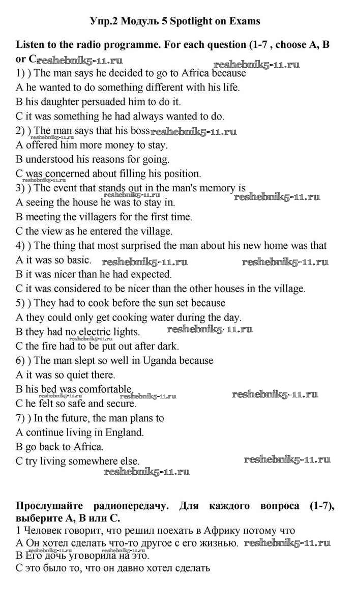 Готовая домашняя работа с ответами по Английскому языку за 11 класс Эванс, Дули, Оби, Афанасьева, Михеева Учебник Spotlight Просвещение 2015 ФГОС - Spotlight on exams Listening