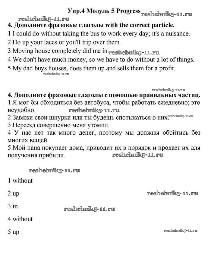 Готовая домашняя работа с ответами по Английскому языку за 11 класс Эванс, Дули, Оби, Афанасьева, Михеева Учебник Spotlight Просвещение 2015 ФГОС - Progress check 5 4