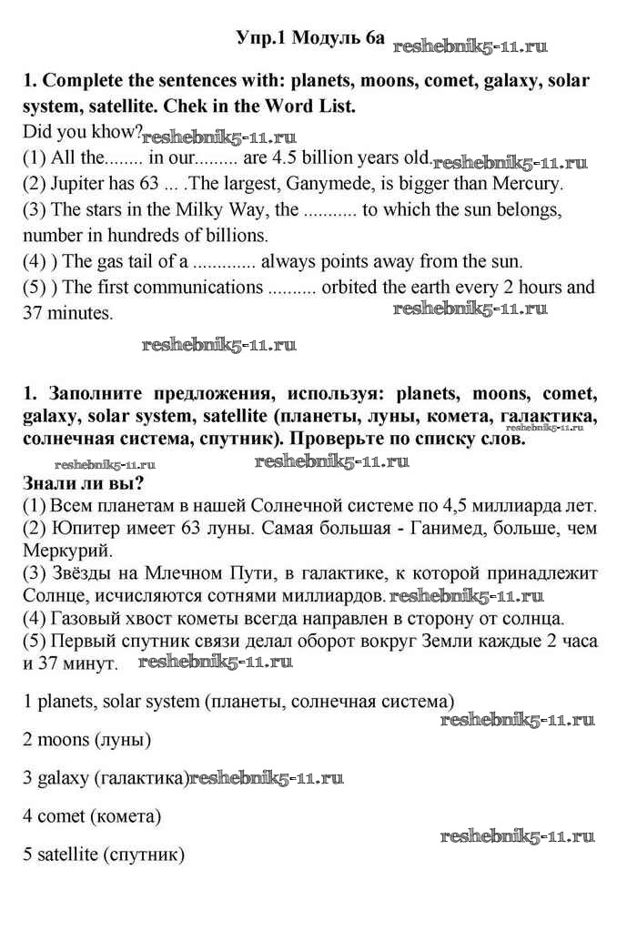 Готовая домашняя работа с ответами по Английскому языку за 11 класс Эванс, Дули, Оби, Афанасьева, Михеева Учебник Spotlight Просвещение 2015 ФГОС - 6a 1