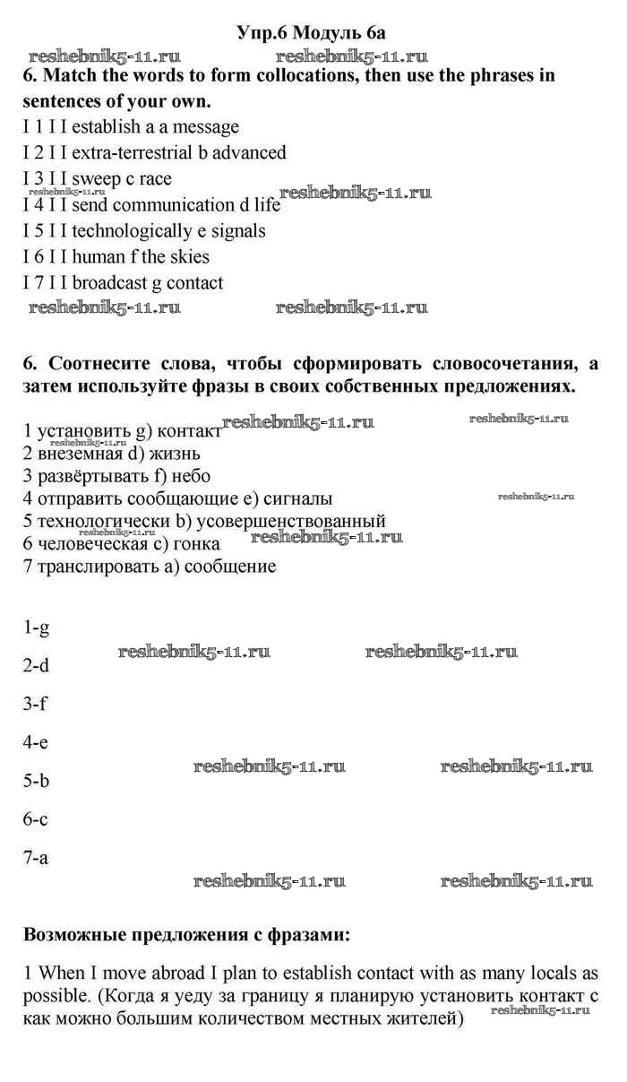 Готовая домашняя работа с ответами по Английскому языку за 11 класс Эванс, Дули, Оби, Афанасьева, Михеева Учебник Spotlight Просвещение 2015 ФГОС - 6a 6