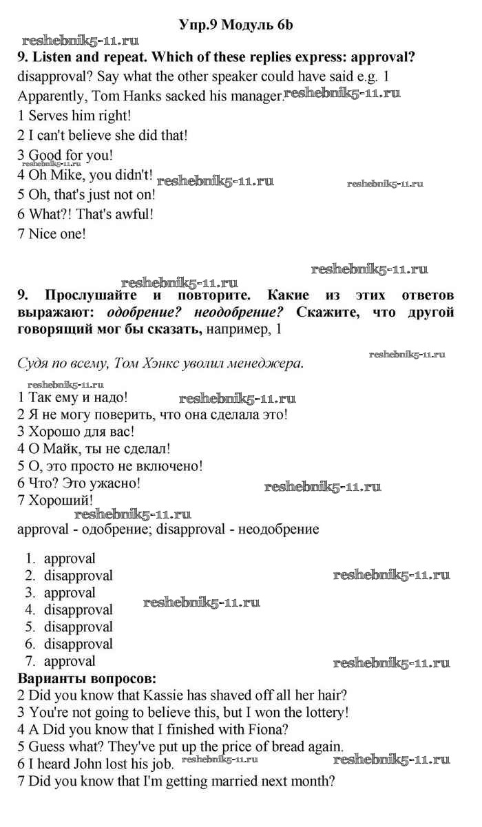 Готовая домашняя работа с ответами по Английскому языку за 11 класс Эванс, Дули, Оби, Афанасьева, Михеева Учебник Spotlight Просвещение 2015 ФГОС - 6b 9