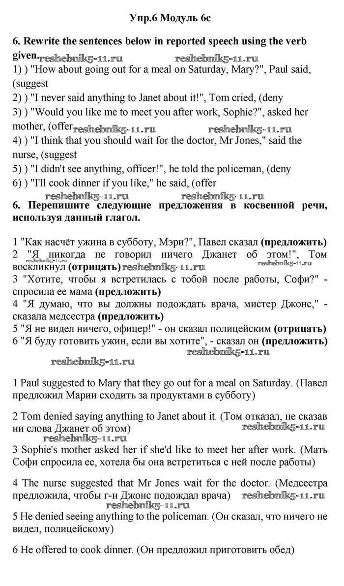 Готовая домашняя работа с ответами по Английскому языку за 11 класс Эванс, Дули, Оби, Афанасьева, Михеева Учебник Spotlight Просвещение 2015 ФГОС - 6c 6