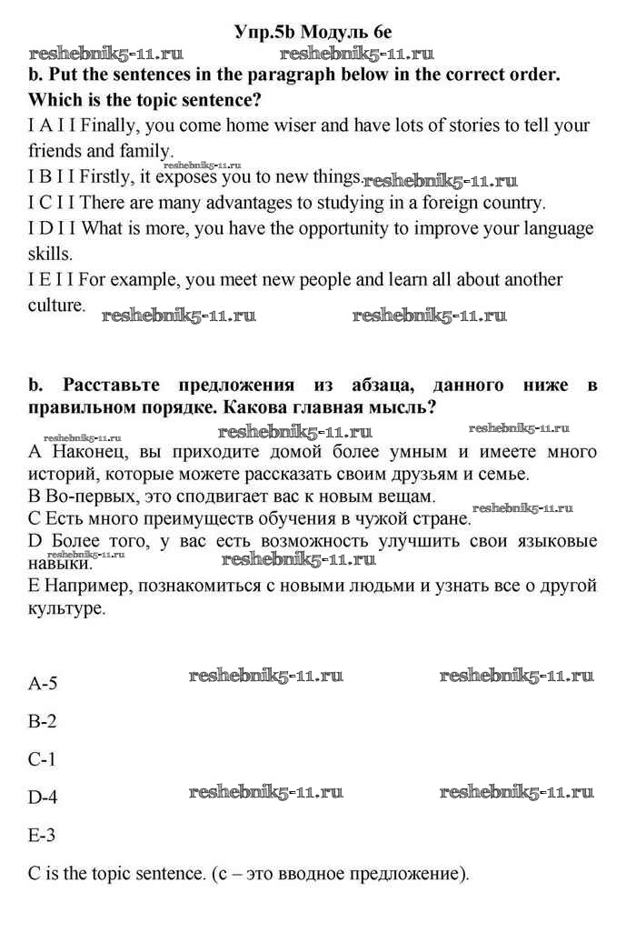 Готовая домашняя работа с ответами по Английскому языку за 11 класс Эванс, Дули, Оби, Афанасьева, Михеева Учебник Spotlight Просвещение 2015 ФГОС - 6e 5