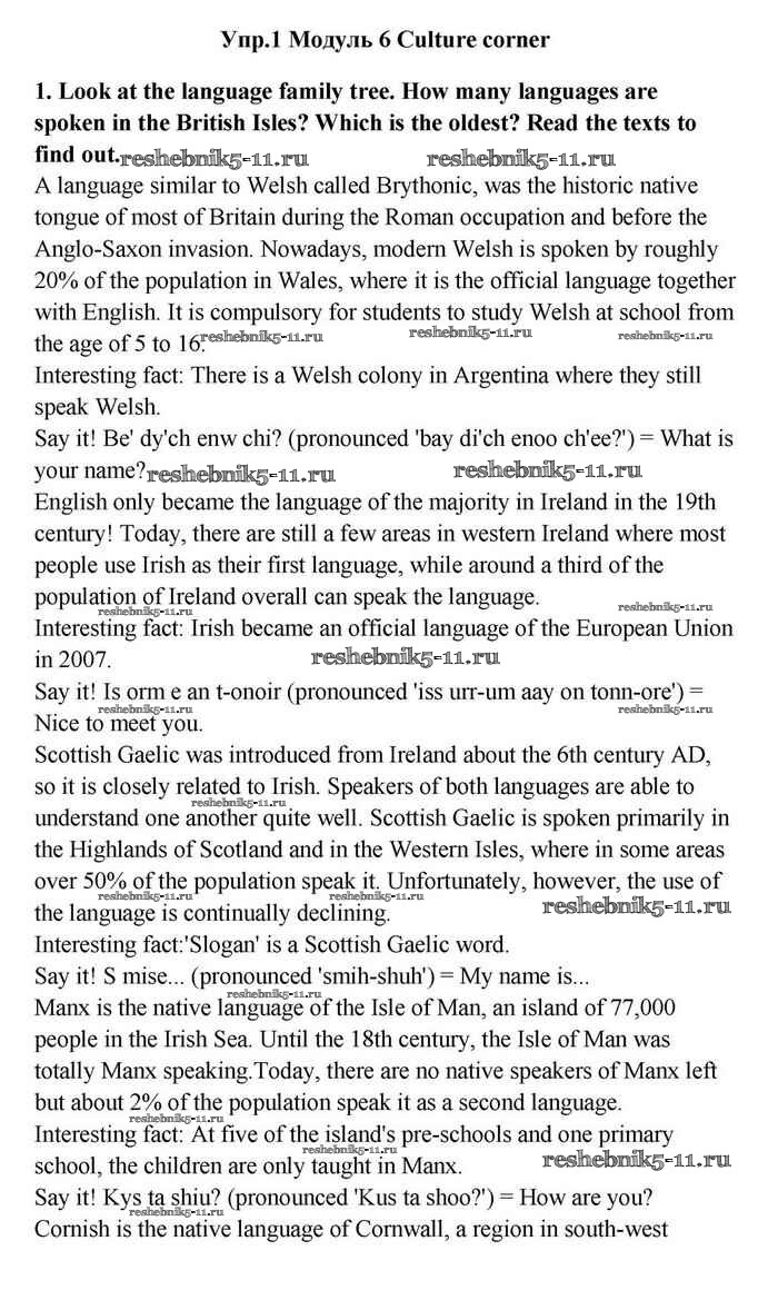 Готовая домашняя работа с ответами по Английскому языку за 11 класс Эванс, Дули, Оби, Афанасьева, Михеева Учебник Spotlight Просвещение 2015 ФГОС - Culture corner 6 1