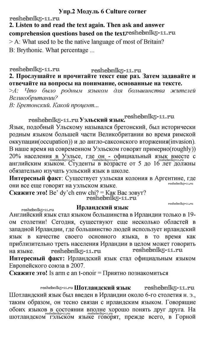 Готовая домашняя работа с ответами по Английскому языку за 11 класс Эванс, Дули, Оби, Афанасьева, Михеева Учебник Spotlight Просвещение 2015 ФГОС - Culture corner 6 2