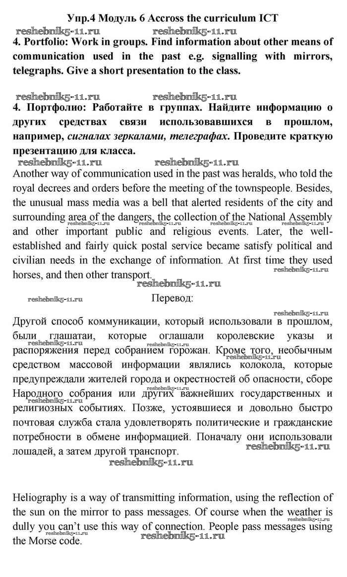 Готовая домашняя работа с ответами по Английскому языку за 11 класс Эванс, Дули, Оби, Афанасьева, Михеева Учебник Spotlight Просвещение 2015 ФГОС - Across the curriculum 4