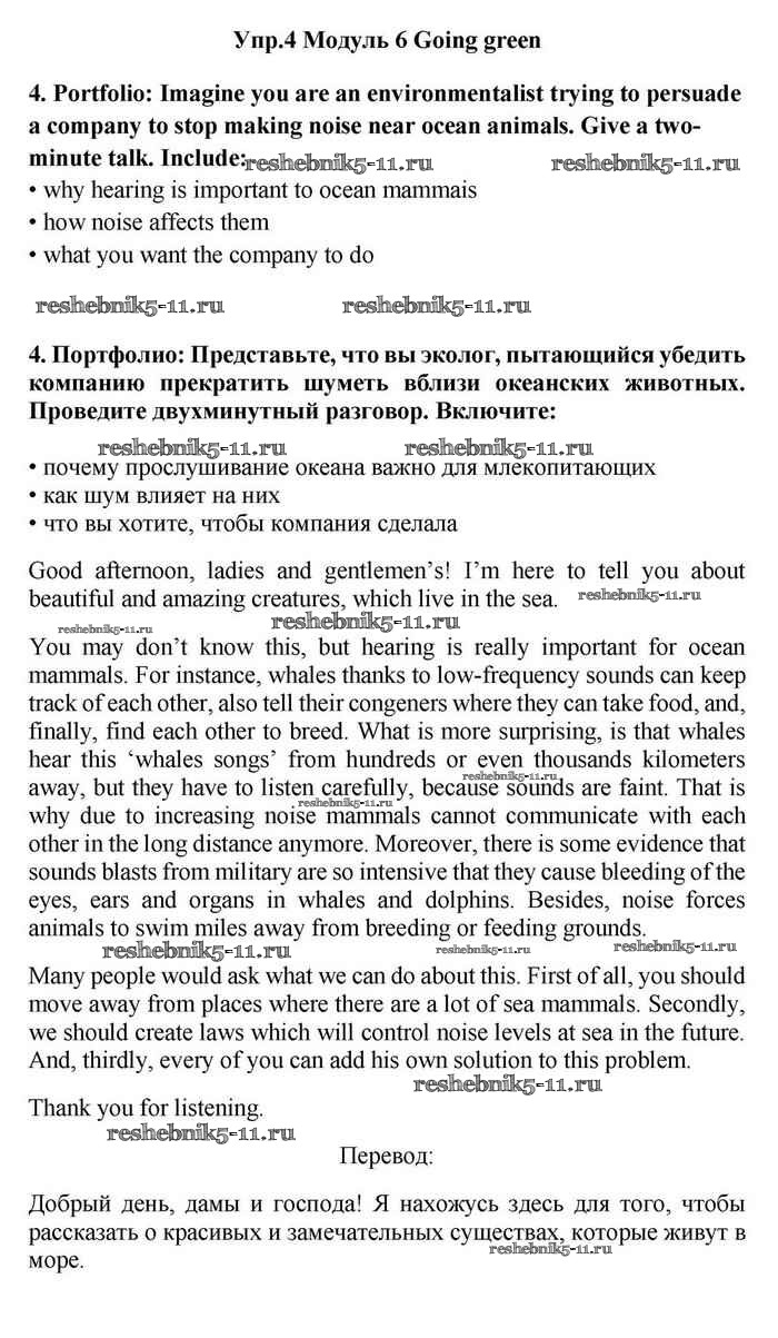 Готовая домашняя работа с ответами по Английскому языку за 11 класс Эванс, Дули, Оби, Афанасьева, Михеева Учебник Spotlight Просвещение 2015 ФГОС - Going green 4