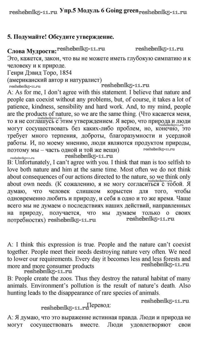 Готовая домашняя работа с ответами по Английскому языку за 11 класс Эванс, Дули, Оби, Афанасьева, Михеева Учебник Spotlight Просвещение 2015 ФГОС - Going green 5