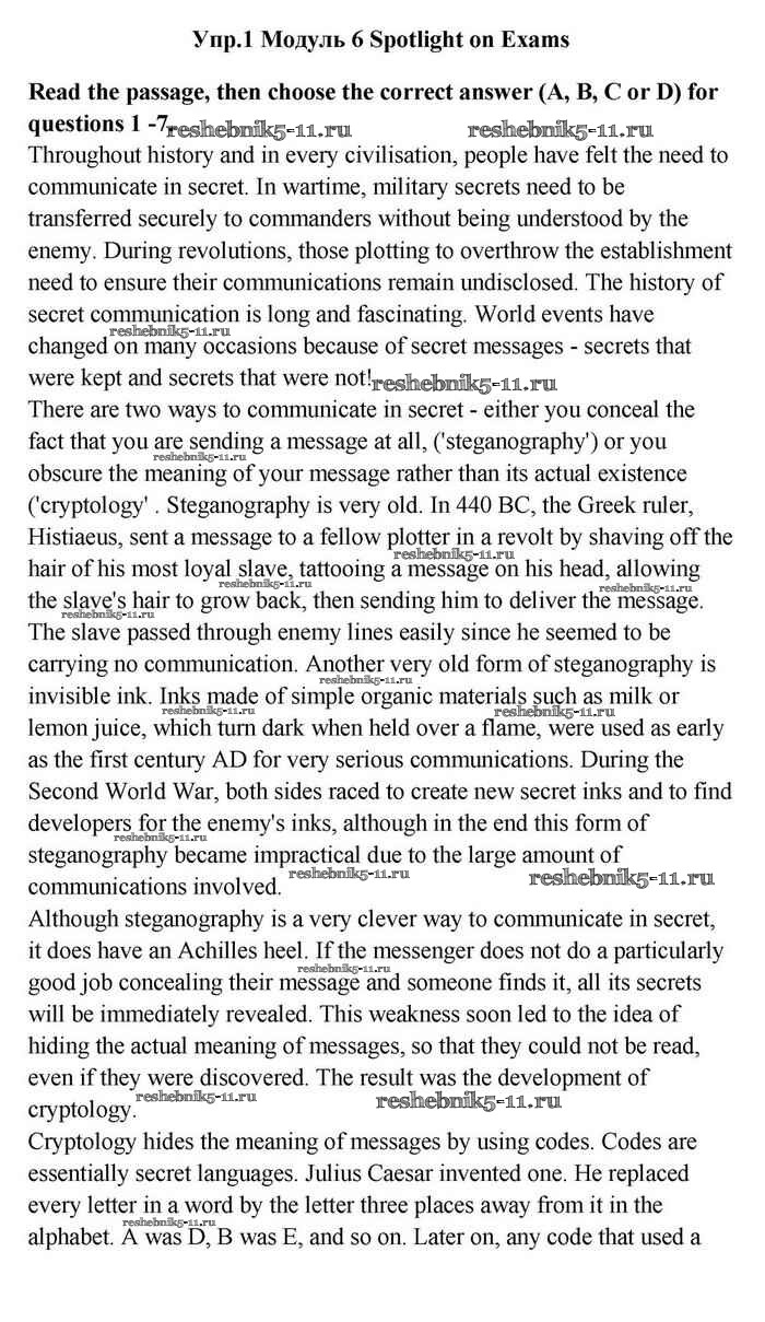 Решебник №1 / module 6 / spotlight on exams / reading