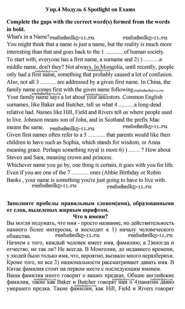 Готовая домашняя работа с ответами по Английскому языку за 11 класс Эванс, Дули, Оби, Афанасьева, Михеева Учебник Spotlight Просвещение 2015 ФГОС - Spotlight on exams Use of English