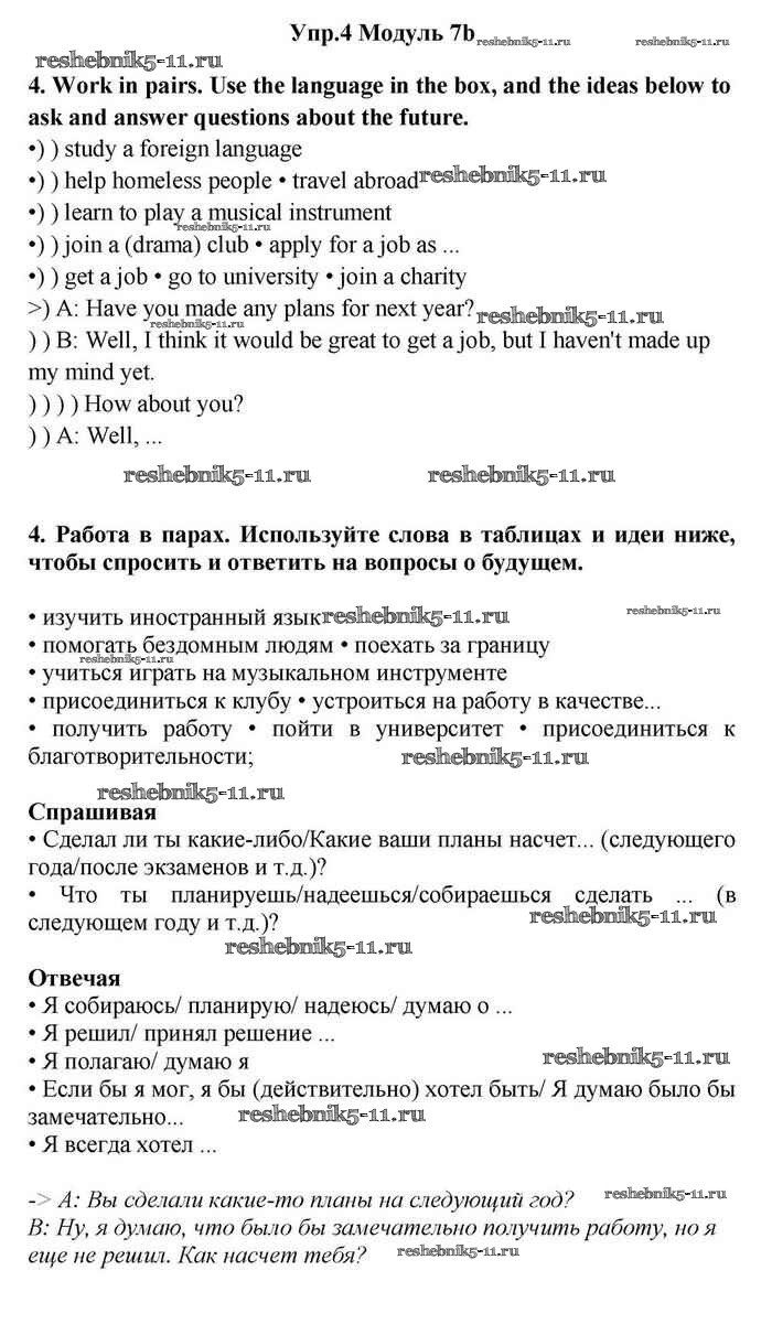 Готовая домашняя работа с ответами по Английскому языку за 11 класс Эванс, Дули, Оби, Афанасьева, Михеева Учебник Spotlight Просвещение 2015 ФГОС - 7b 4