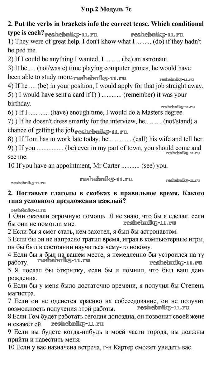 Готовая домашняя работа с ответами по Английскому языку за 11 класс Эванс, Дули, Оби, Афанасьева, Михеева Учебник Spotlight Просвещение 2015 ФГОС - 7c 2