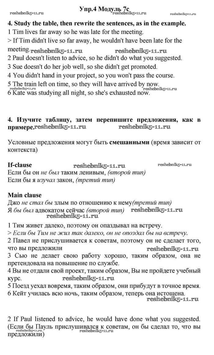 Готовая домашняя работа с ответами по Английскому языку за 11 класс Эванс, Дули, Оби, Афанасьева, Михеева Учебник Spotlight Просвещение 2015 ФГОС - 7c 4