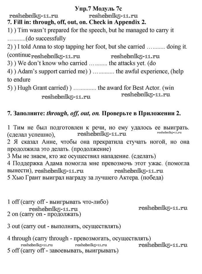 Готовая домашняя работа с ответами по Английскому языку за 11 класс Эванс, Дули, Оби, Афанасьева, Михеева Учебник Spotlight Просвещение 2015 ФГОС - 7c 7