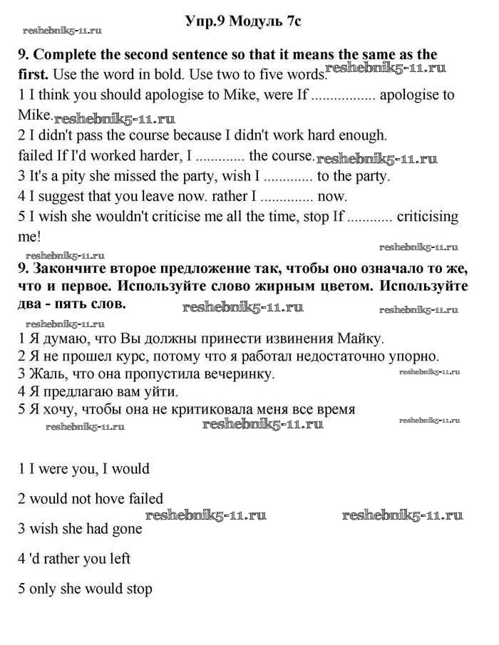 Готовая домашняя работа с ответами по Английскому языку за 11 класс Эванс, Дули, Оби, Афанасьева, Михеева Учебник Spotlight Просвещение 2015 ФГОС - 7c 9