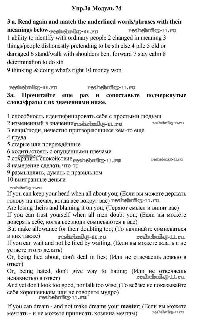 Готовая домашняя работа с ответами по Английскому языку за 11 класс Эванс, Дули, Оби, Афанасьева, Михеева Учебник Spotlight Просвещение 2015 ФГОС - 7d 3