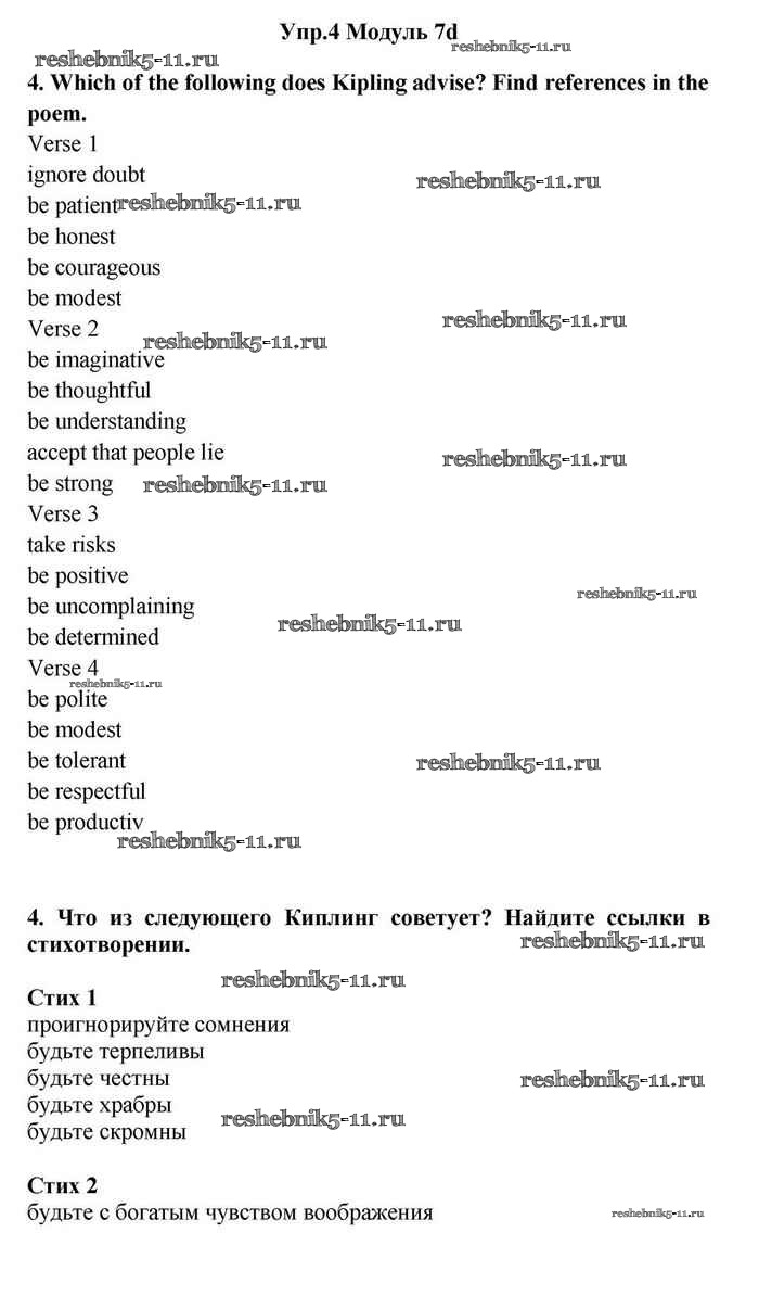 Готовая домашняя работа с ответами по Английскому языку за 11 класс Эванс, Дули, Оби, Афанасьева, Михеева Учебник Spotlight Просвещение 2015 ФГОС - 7d 4
