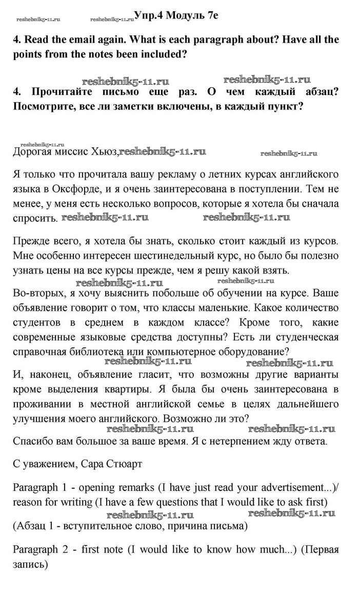 Готовая домашняя работа с ответами по Английскому языку за 11 класс Эванс, Дули, Оби, Афанасьева, Михеева Учебник Spotlight Просвещение 2015 ФГОС - 7e 4
