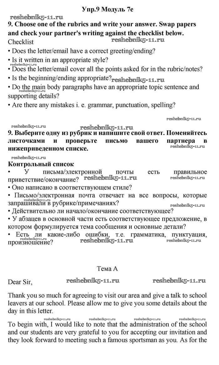 Готовая домашняя работа с ответами по Английскому языку за 11 класс Эванс, Дули, Оби, Афанасьева, Михеева Учебник Spotlight Просвещение 2015 ФГОС - 7e 9