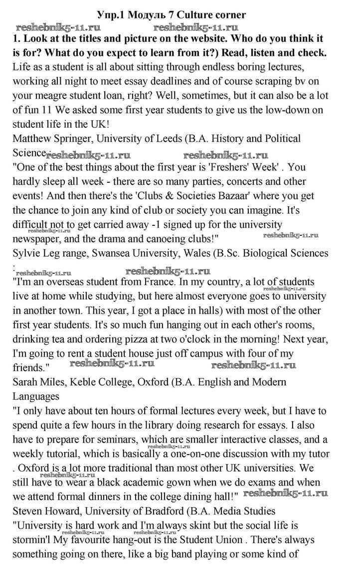 Готовая домашняя работа с ответами по Английскому языку за 11 класс Эванс, Дули, Оби, Афанасьева, Михеева Учебник Spotlight Просвещение 2015 ФГОС - Culture corner 7 1