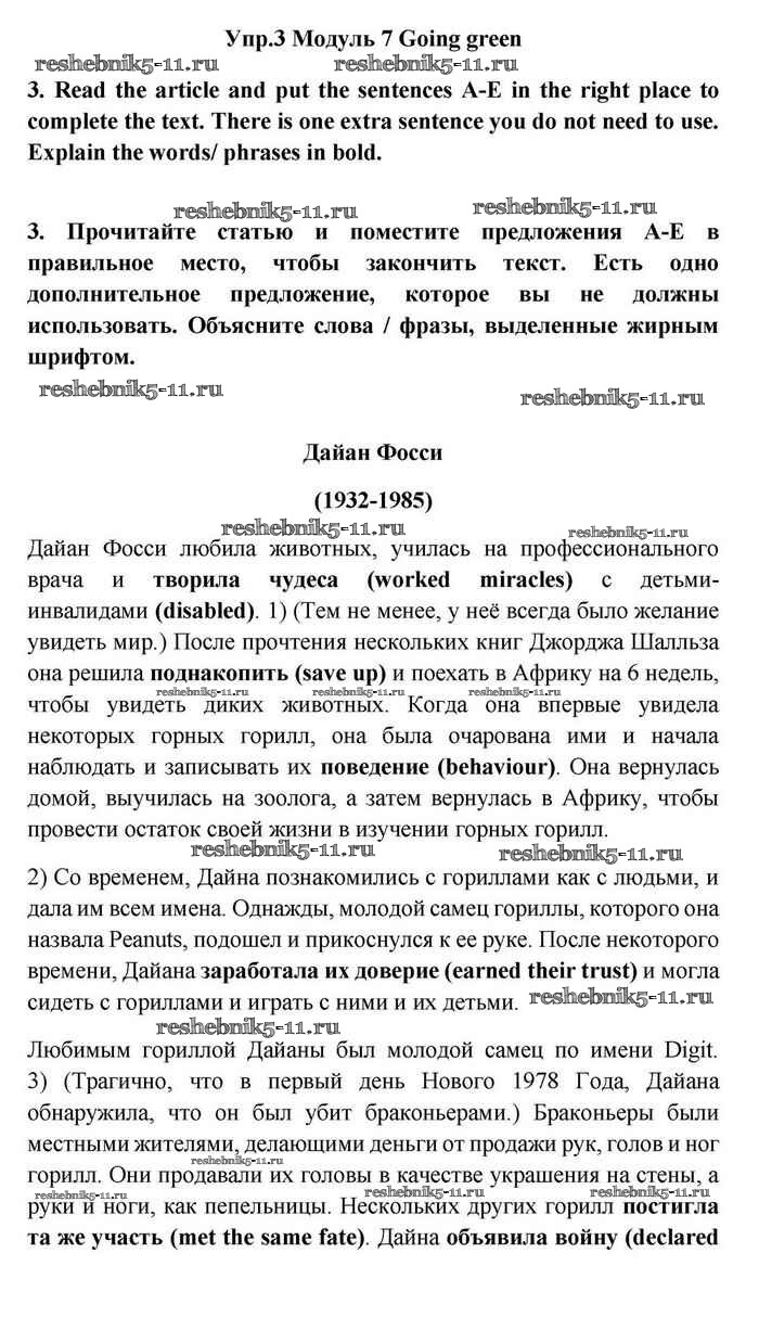Готовая домашняя работа с ответами по Английскому языку за 11 класс Эванс, Дули, Оби, Афанасьева, Михеева Учебник Spotlight Просвещение 2015 ФГОС - Going green 3