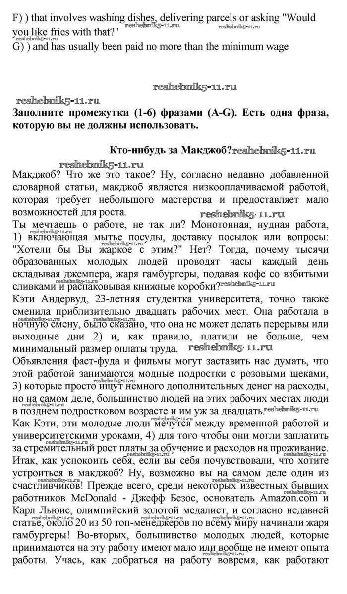 Готовая домашняя работа с ответами по Английскому языку за 11 класс Эванс, Дули, Оби, Афанасьева, Михеева Учебник Spotlight Просвещение 2015 ФГОС - Spotlight on exams Reading