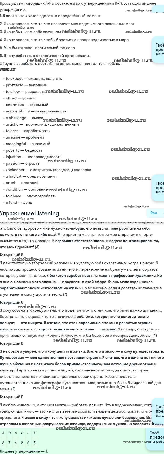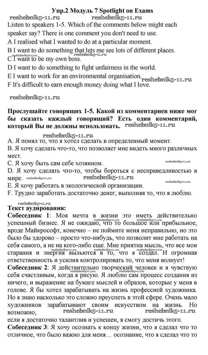 Готовая домашняя работа с ответами по Английскому языку за 11 класс Эванс, Дули, Оби, Афанасьева, Михеева Учебник Spotlight Просвещение 2015 ФГОС - Spotlight on exams Listening