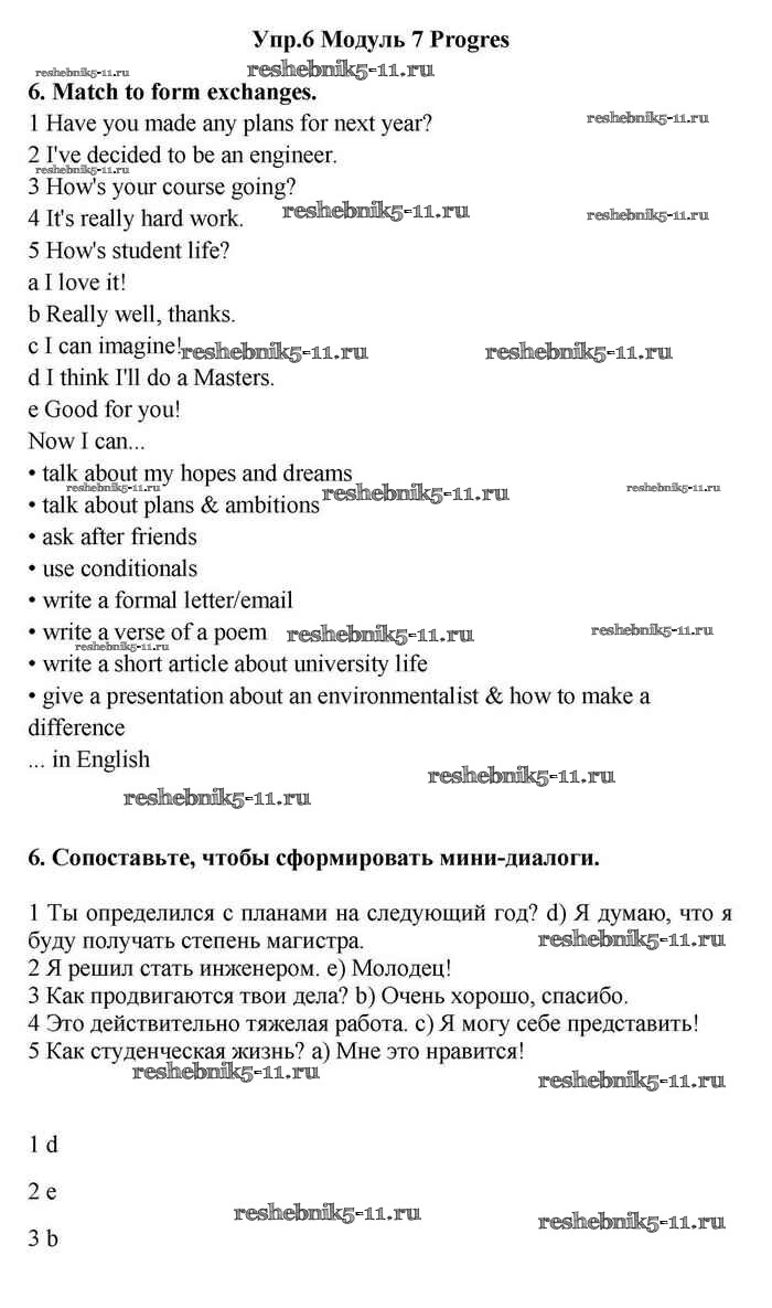 Готовая домашняя работа с ответами по Английскому языку за 11 класс Эванс, Дули, Оби, Афанасьева, Михеева Учебник Spotlight Просвещение 2015 ФГОС - Progress check 7 6