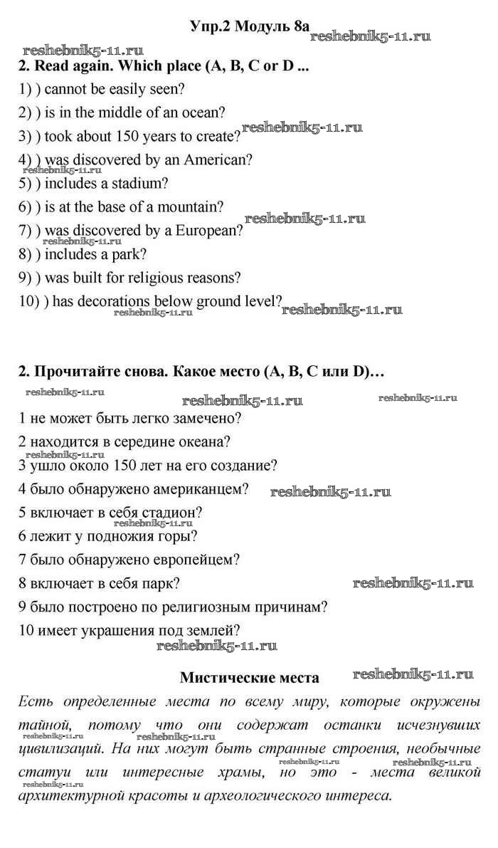 Готовая домашняя работа с ответами по Английскому языку за 11 класс Эванс, Дули, Оби, Афанасьева, Михеева Учебник Spotlight Просвещение 2015 ФГОС - 8a 2