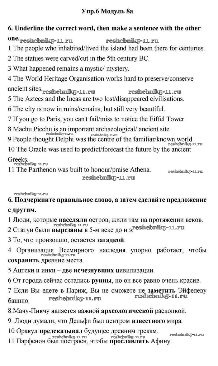 Готовая домашняя работа с ответами по Английскому языку за 11 класс Эванс, Дули, Оби, Афанасьева, Михеева Учебник Spotlight Просвещение 2015 ФГОС - 8a 6