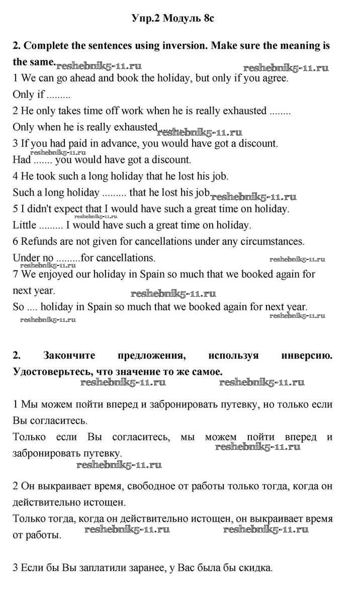 Готовая домашняя работа с ответами по Английскому языку за 11 класс Эванс, Дули, Оби, Афанасьева, Михеева Учебник Spotlight Просвещение 2015 ФГОС - 8c 2