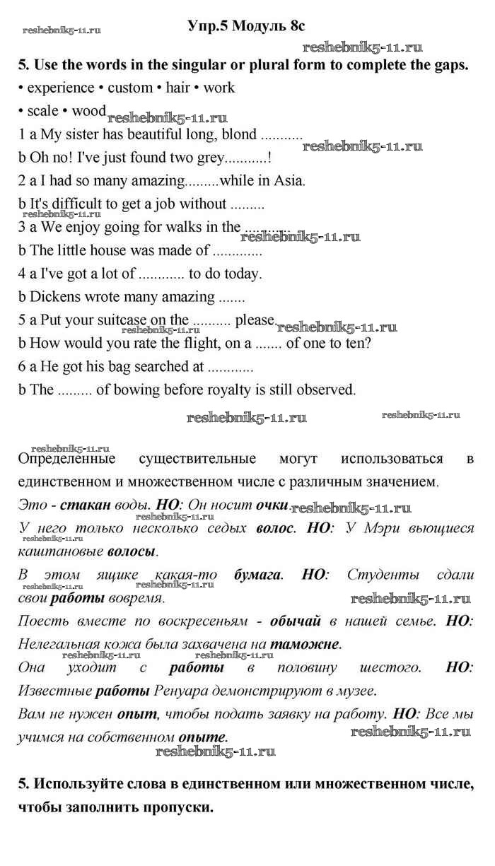 Готовая домашняя работа с ответами по Английскому языку за 11 класс Эванс, Дули, Оби, Афанасьева, Михеева Учебник Spotlight Просвещение 2015 ФГОС - 8c 5