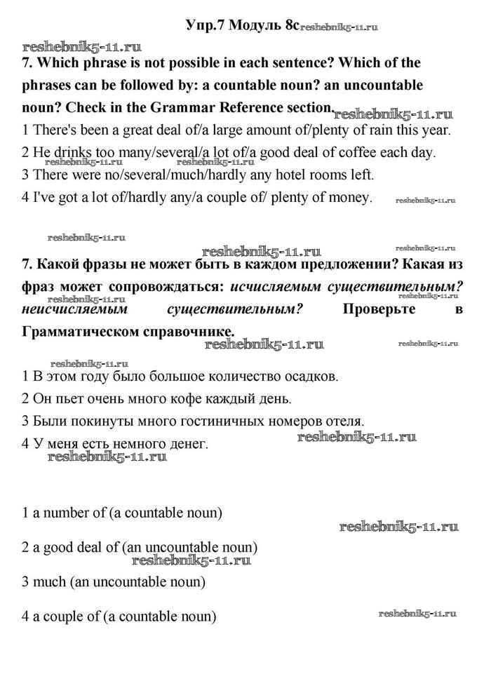 Готовая домашняя работа с ответами по Английскому языку за 11 класс Эванс, Дули, Оби, Афанасьева, Михеева Учебник Spotlight Просвещение 2015 ФГОС - 8c 7