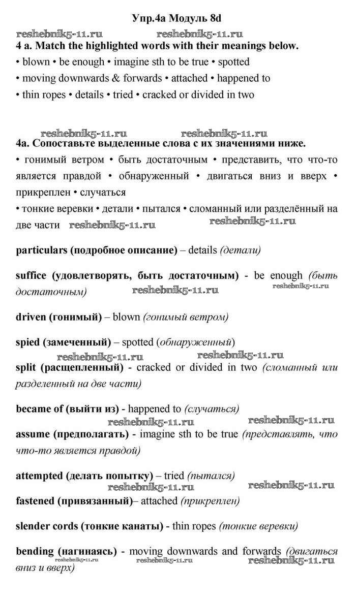Готовая домашняя работа с ответами по Английскому языку за 11 класс Эванс, Дули, Оби, Афанасьева, Михеева Учебник Spotlight Просвещение 2015 ФГОС - 8d 4