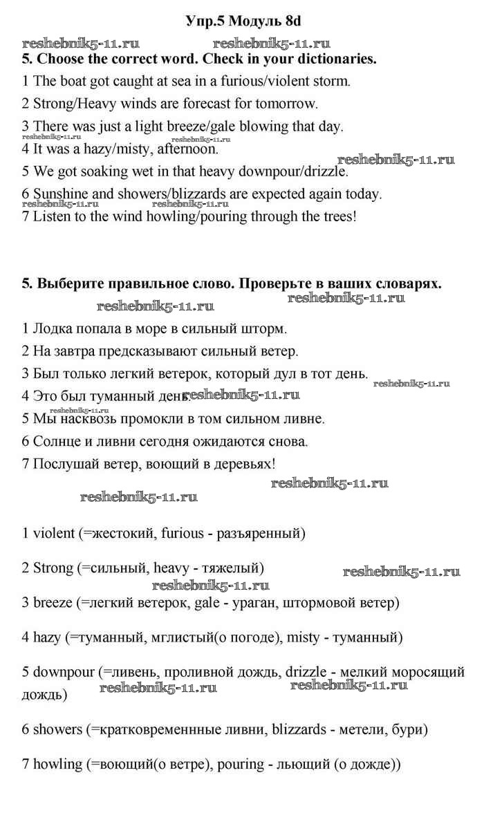 Готовая домашняя работа с ответами по Английскому языку за 11 класс Эванс, Дули, Оби, Афанасьева, Михеева Учебник Spotlight Просвещение 2015 ФГОС - 8d 5
