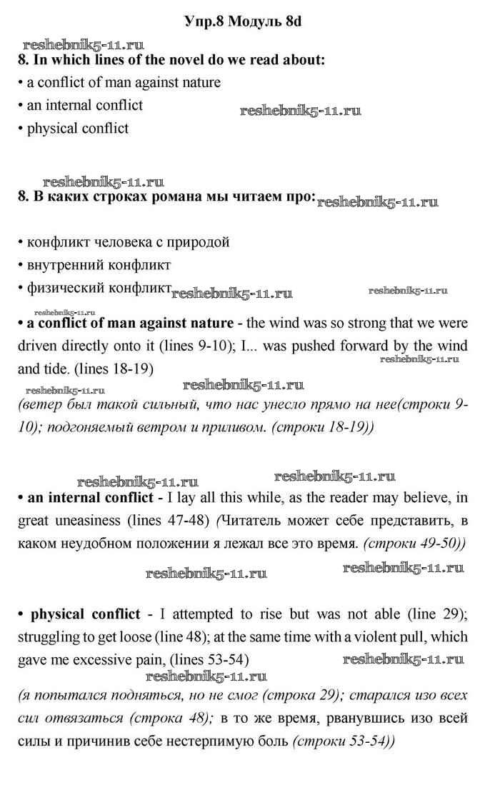 Готовая домашняя работа с ответами по Английскому языку за 11 класс Эванс, Дули, Оби, Афанасьева, Михеева Учебник Spotlight Просвещение 2015 ФГОС - 8d 8