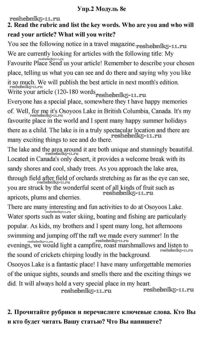 Готовая домашняя работа с ответами по Английскому языку за 11 класс Эванс, Дули, Оби, Афанасьева, Михеева Учебник Spotlight Просвещение 2015 ФГОС - 8e 2