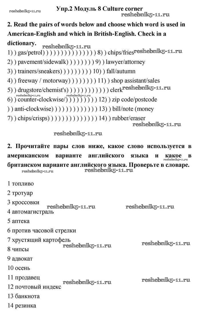 Готовая домашняя работа с ответами по Английскому языку за 11 класс Эванс, Дули, Оби, Афанасьева, Михеева Учебник Spotlight Просвещение 2015 ФГОС - Culture corner 8 2